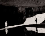 DescriptionAn elderly woman (O'Keeffe) at the left is wearing a white top and skirt standing next to a large pool of water where her full reflection can be seen. A man in profile is standing in the background look up; his reflection can be seen in the water at the lower right. The pair is surrounded by a cave-like structure.On View
