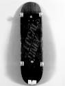 DescriptionSkateboard flipped on its back, underneath skateboard read "Locals only". White tires.