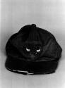 DescriptionDark baseball cap with an image of a bull in center "Chicago Bull" ragged and torn around edge of brim.On View
