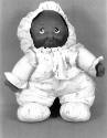 DescriptionDoll with bonnet and sleepwear with rocking horse pattern, tag reads: "Montana Fredrick"On View