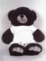DescriptionBlack Teddy bear wearing a white playsuit with watermelons around the edges.On View