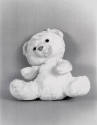 DescriptionWhite teddy bear with black eyes and a pink nose.On View