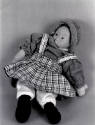 DescriptionRag doll with a ceramic face, wearing a hat, sweater and jumper.On View