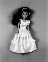 DescriptionDoll with long, dark hair and wearing a dress with lace at collar, at waist, and at edge of dress.On View
