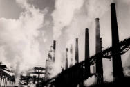 DescriptionFamous photograph showing the rebuilt industry of Stalingrad following the great patriotic war, chimneys with smoke.On View