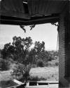DescriptionLandscape viewed from a delapadated back porch of a brick structureOn View
