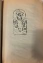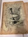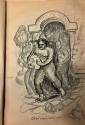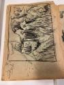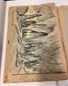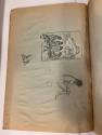 DescriptionOrange covered scrapbook with drawings of Carlsbad Cavern, images of a Native American woman pouring grain, men carrying money bags from a bank, a seated male Native American.