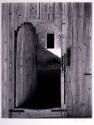 DescriptionWeathered wood gates with smaller door cut into left gate. Thisdoor is open to a courtyard that is partly in shadow. Open door in wall far end of courtyard.On View