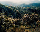 DescriptionLandscape of rolling green hills in mist with foreground of small flowering trees. Tall cactus in background.On View
